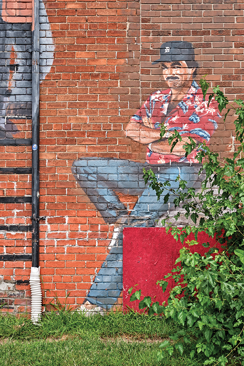 Located on East Grand Boulevard in Detroit, Tony Lee’s “Detroit’s Finest” mural depicts a Magnum P.I.-era Tom Selleck, among others. // Photo by Chuk Nowak
