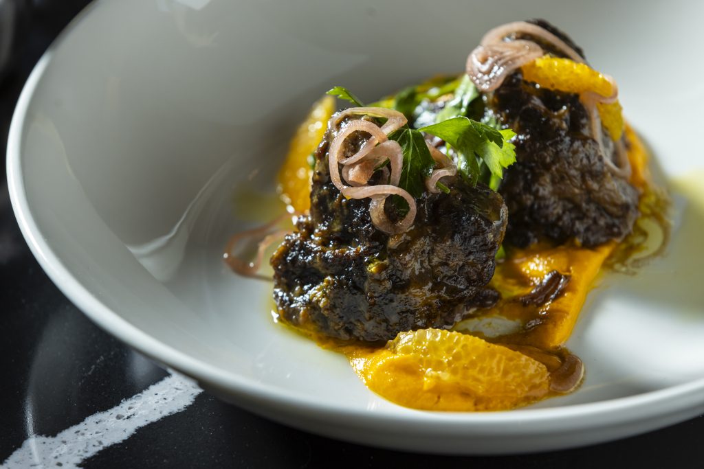 My personal favorite cut of meat at Barda is a humongous, 32-ounce porterhousesteak cooked medium rare and served with an oily, herbaceous chimichurri. Another gem: During the summer, diners can enjoy pork tomahawk loaded with sweet peaches and a filet mignon with a charred onion truffle soubise.
