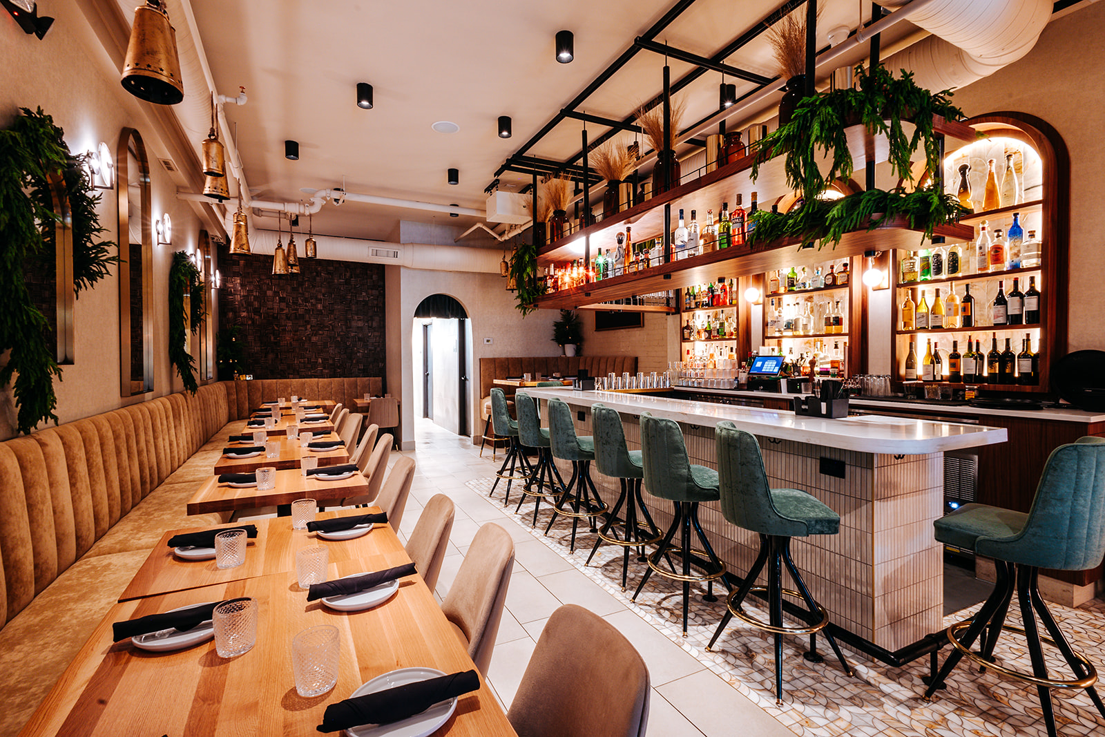 Bell’s Lower Level accommodates up to 30 guests for dinner and is equipped with two TVs with HDMI and AirPlay connectivity for visual presentations or branding needs. Restaurant music can be turned off during presentations, creating a focused setting ideal for corporate meetings, pharmaceutical dinners, and intimate celebrations.