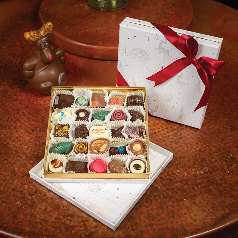 Chocolate Gift Box – Enjoy this 25-piece Quix Chocolate Gift Box, bursting with rich, handcrafted flavors made from premium ingredients. It’s perfect for spreading warmth and joy this holiday season, wrapped in elegant, festive packaging.